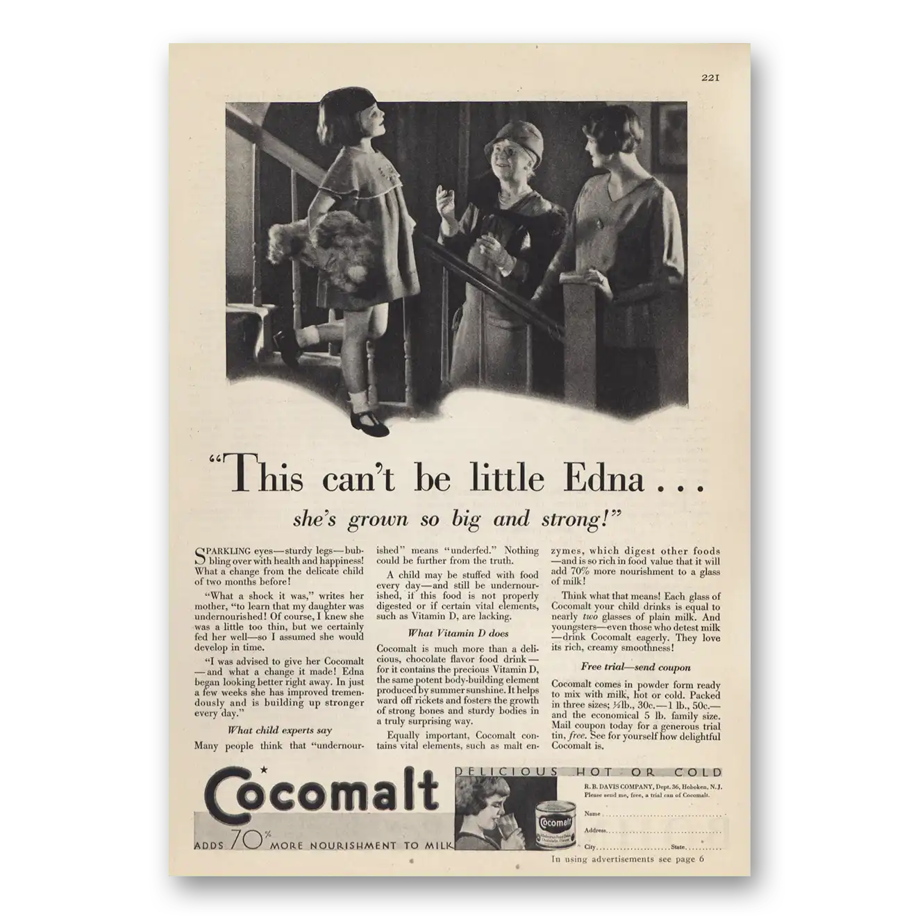 1930 Cocomalt Print Ad | Little Edna