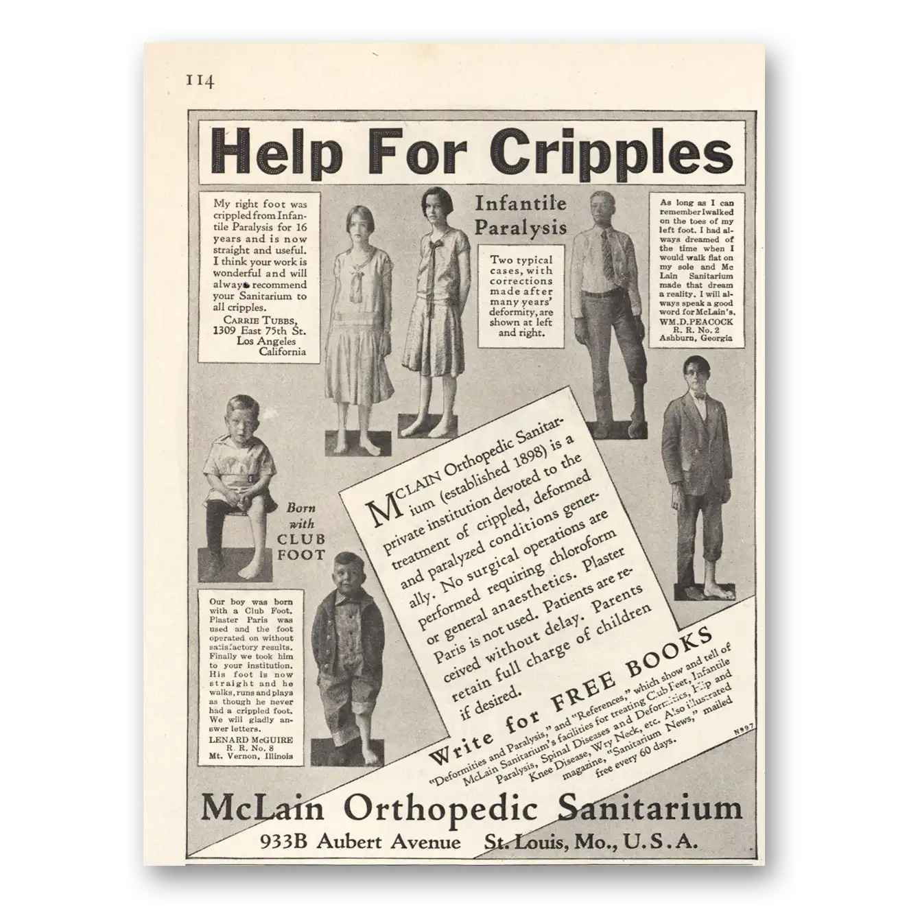 1930 McLain Orthopedic Sanitarium Print Ad | Help For Cripples