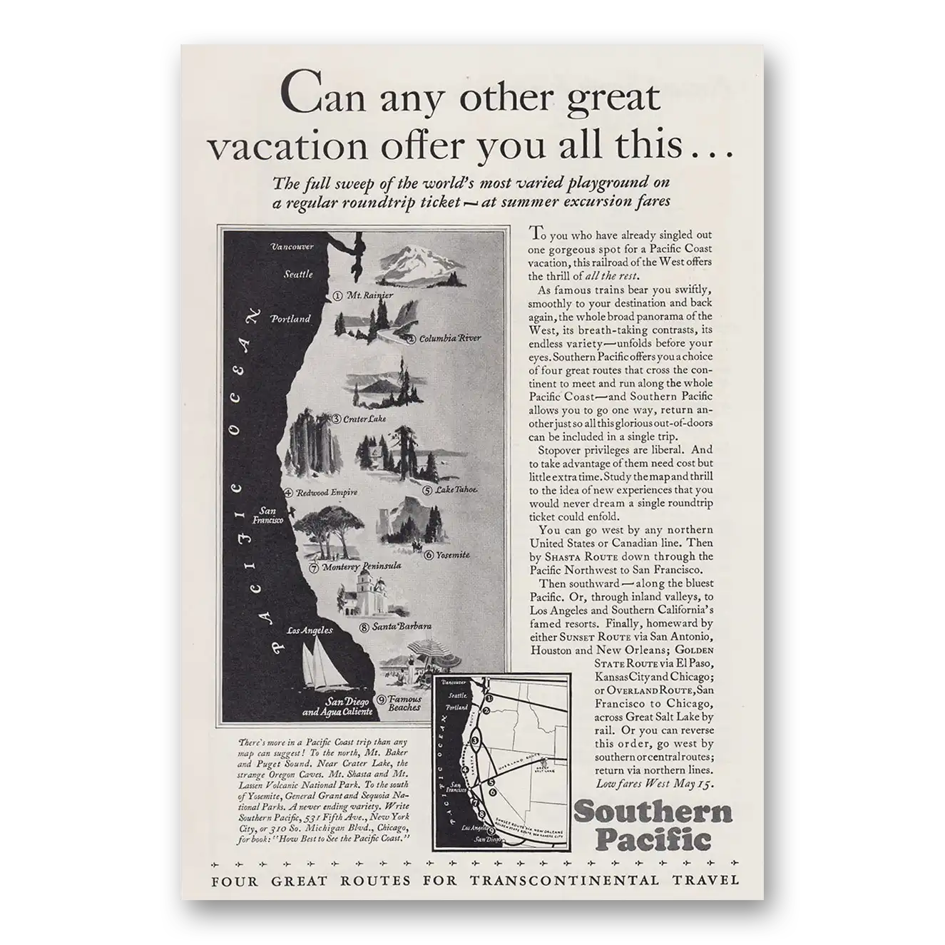 1930 Southern Pacific Print Ad | Vacation Offer