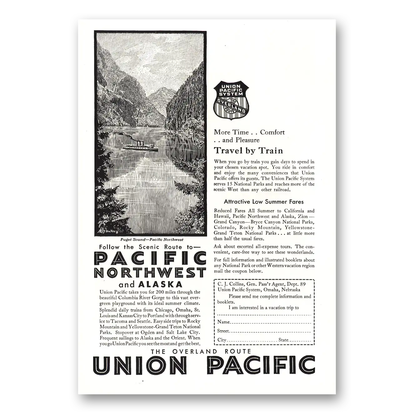 1930 Union Pacific Railroad Print Ad | Puget Sound