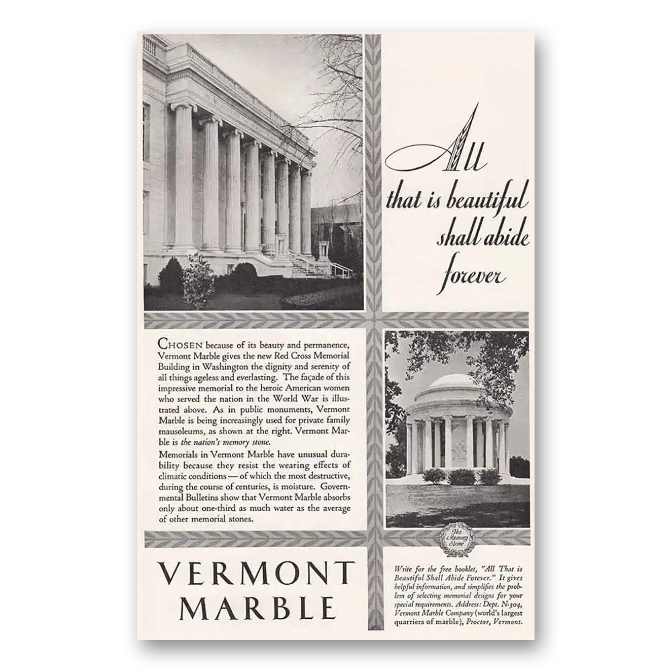 This is an original 1930 Vermont Marble print ad published by Vermont Marble.