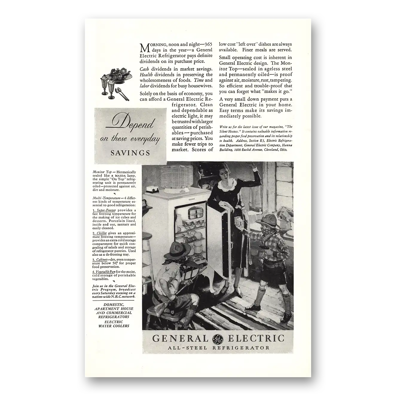 This is an original 1931 General Electric Refrigerator print ad published by General Electric.