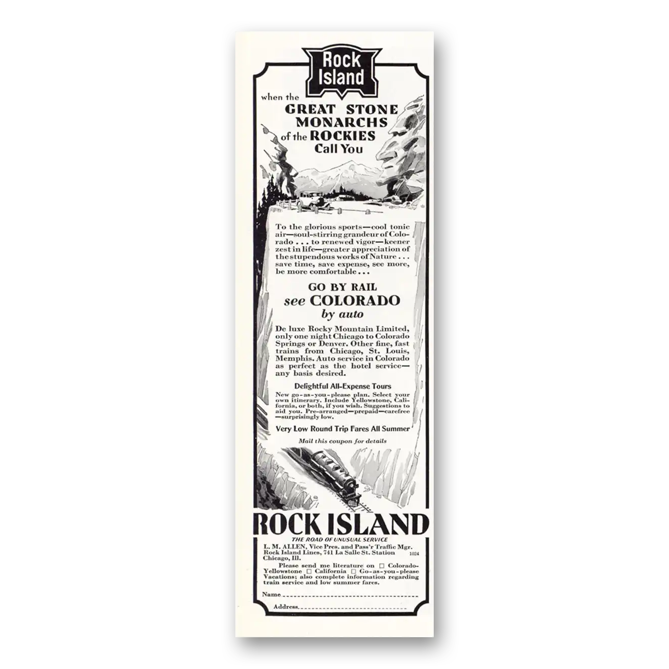 1931 Rock Island Lines Print Ad | Stone Monarchs