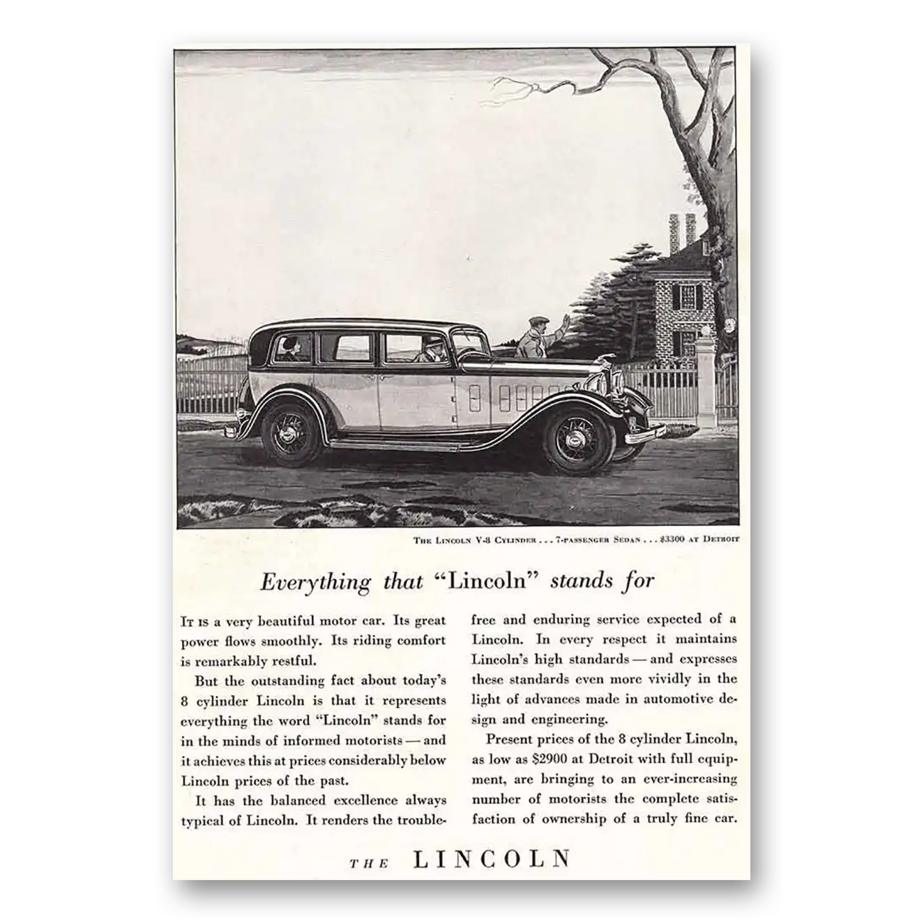 1932 Lincoln Sedan Print Ad | Stands For