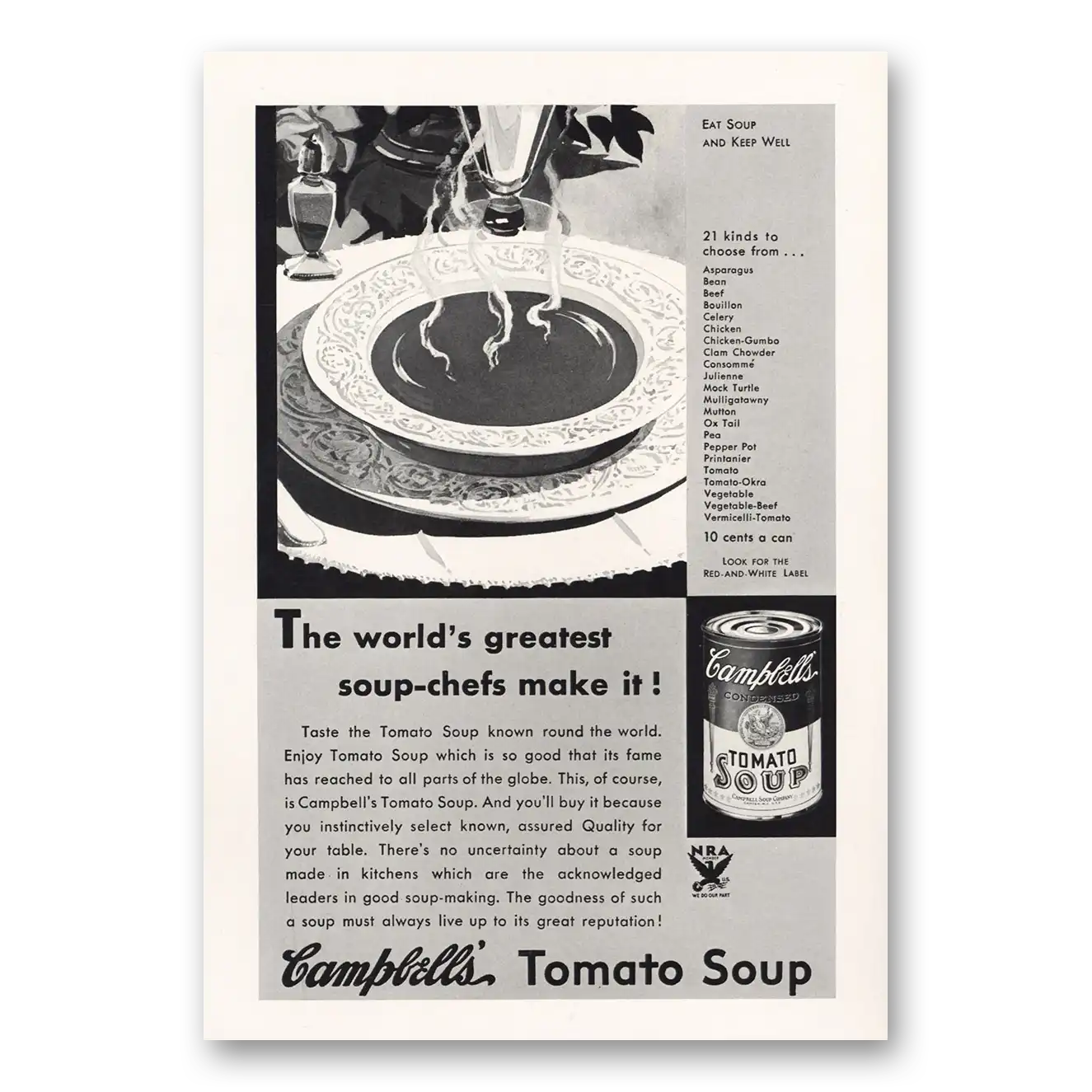 This is an original 1933 Campbells Tomato Soup print ad published by Campbells Soup.