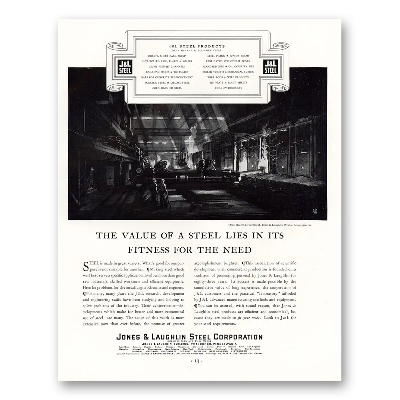 This is an original 1933 J & L Steel print ad published by Jones and Laughlin Steel.