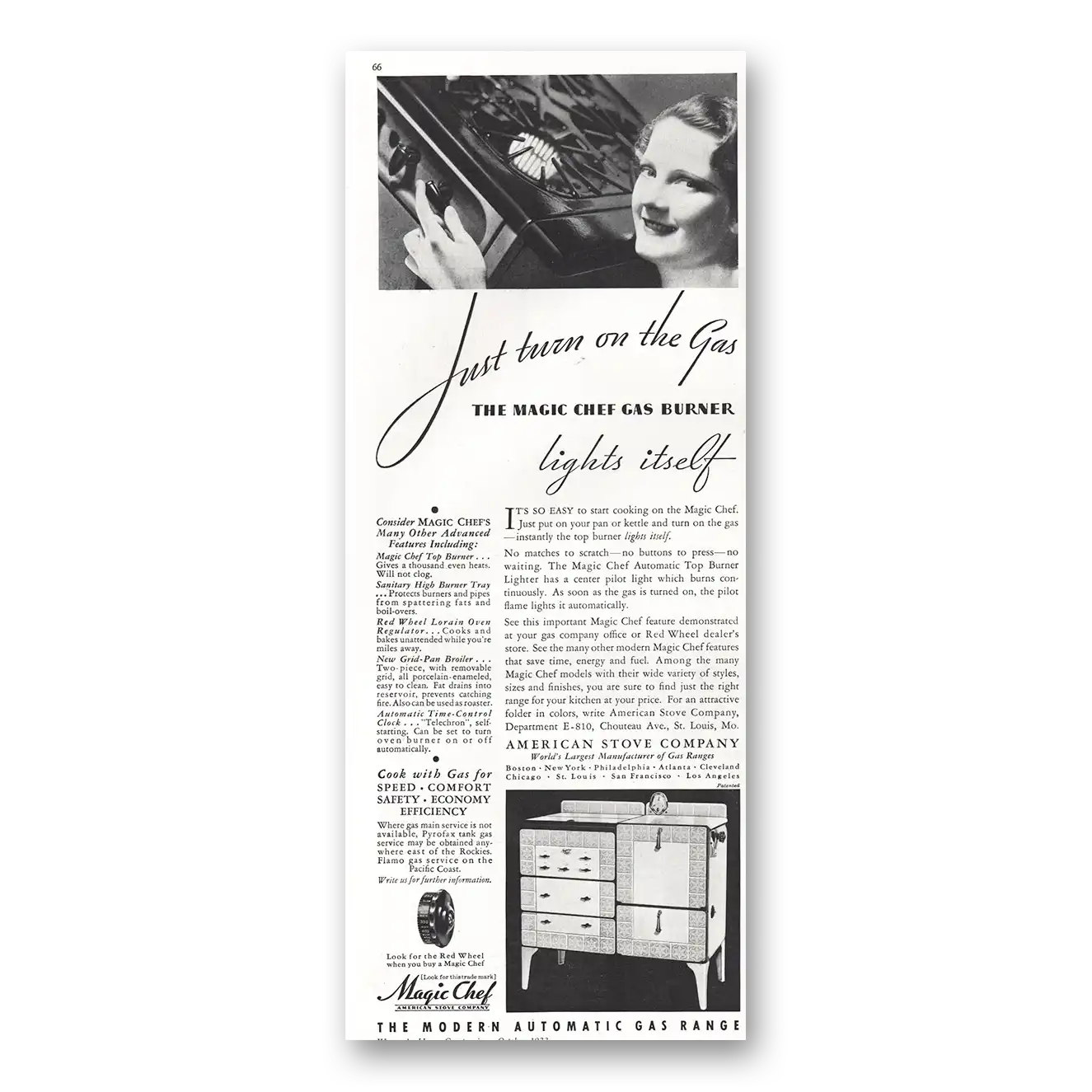 1933 Magic Chef Print Ad | Turn On Gas