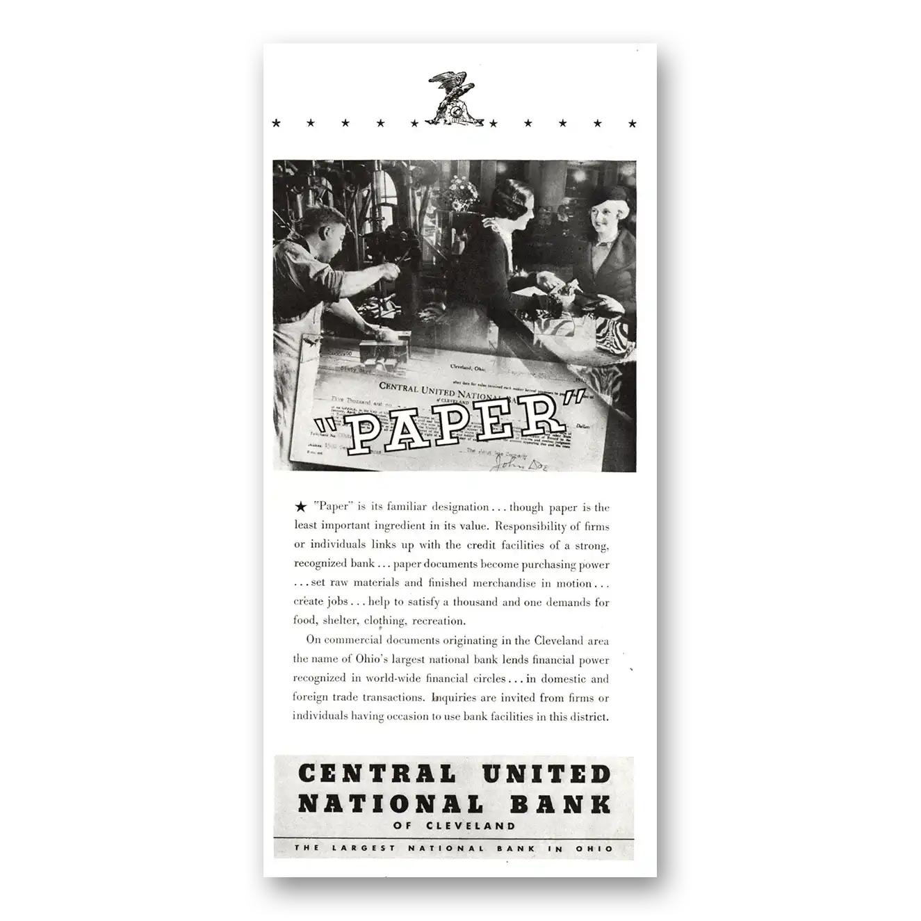 1934 Central United National Bank Print Ad | Paper