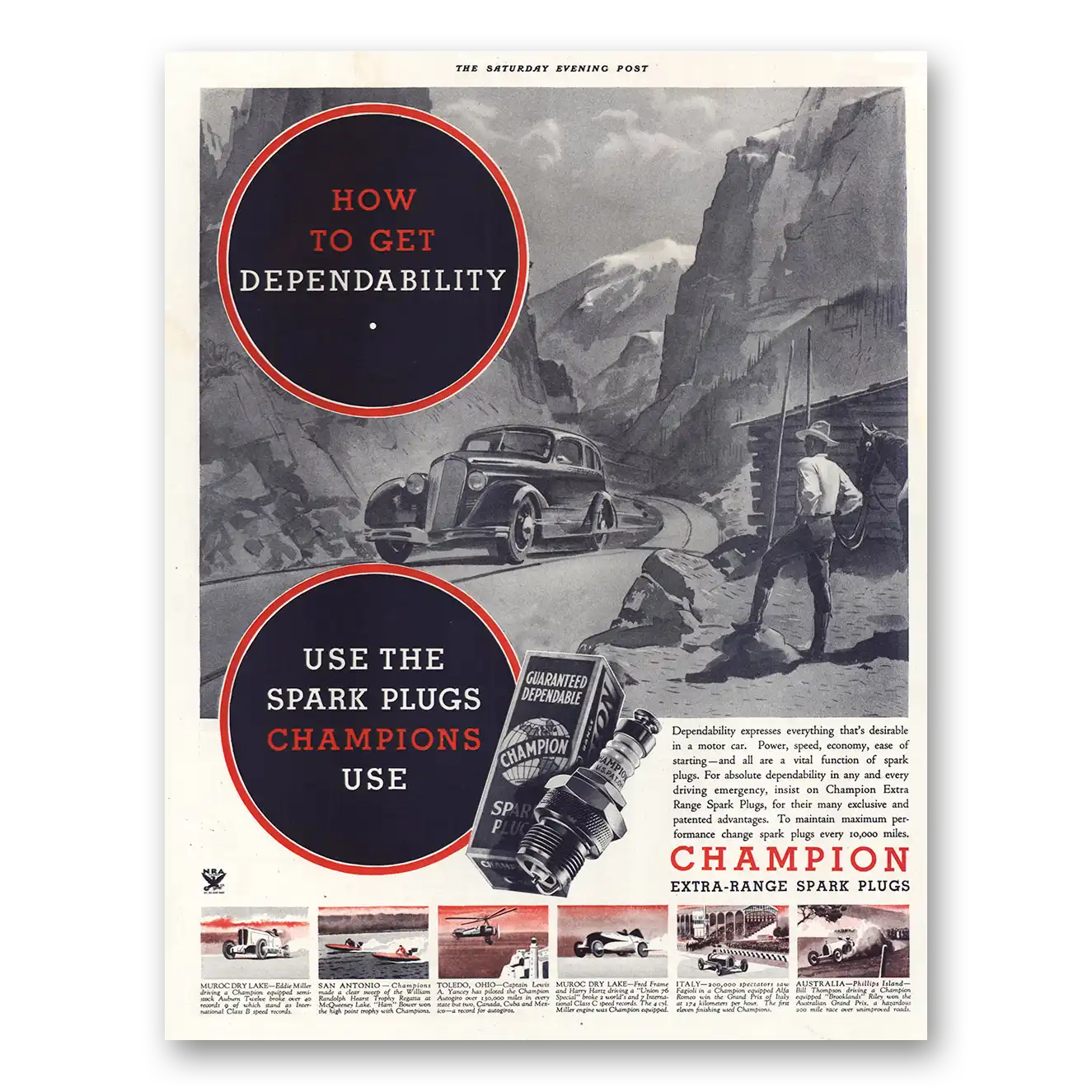 This is an original 1934 Champion Spark Plugs print ad published by Champion Spark Plugs.