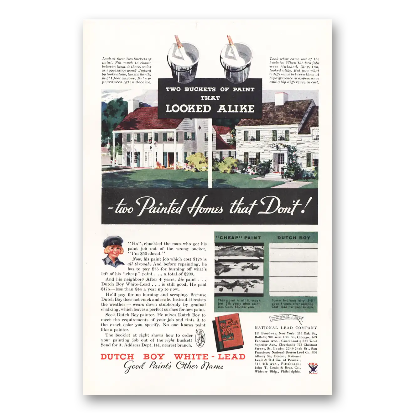 1934 Dutch Boy Paint Print Ad | Two Buckets Paint