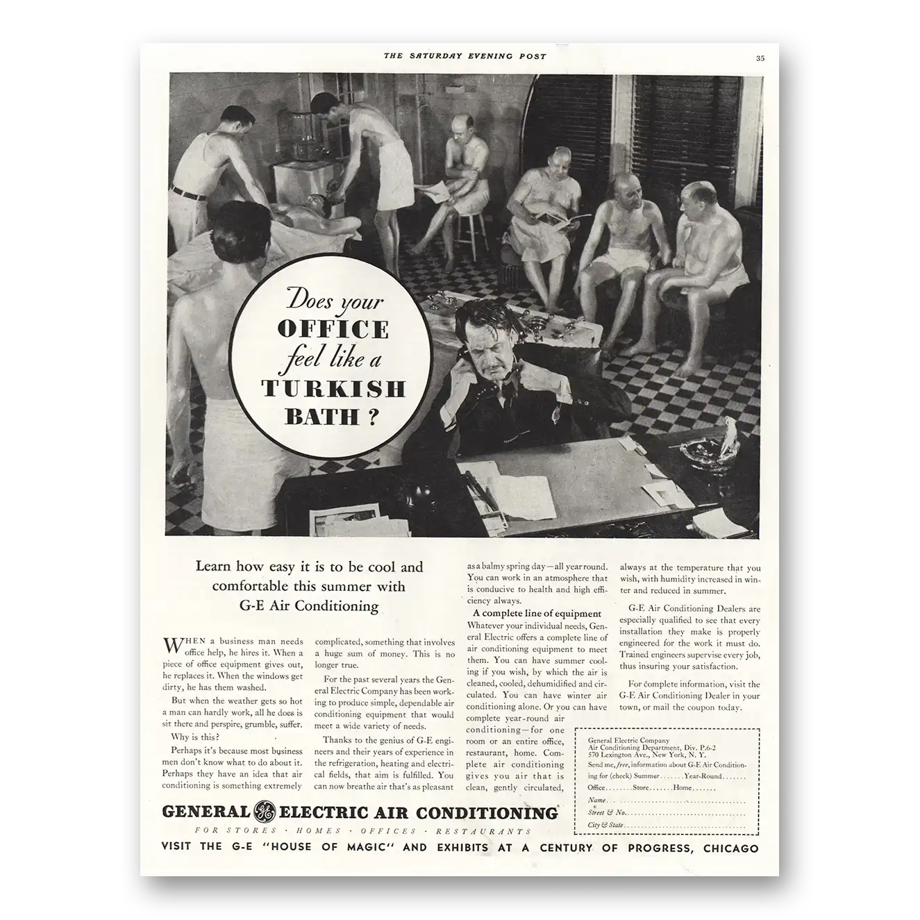 1934 General Electric Air Conditioner Print Ad | Turkish Bath