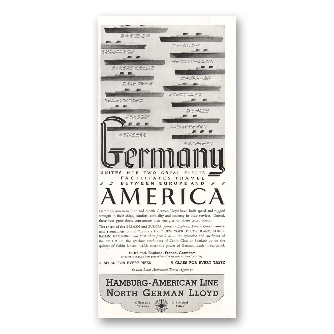This is an original 1934 Hamburg American Line print ad published by Hamburg American Line.