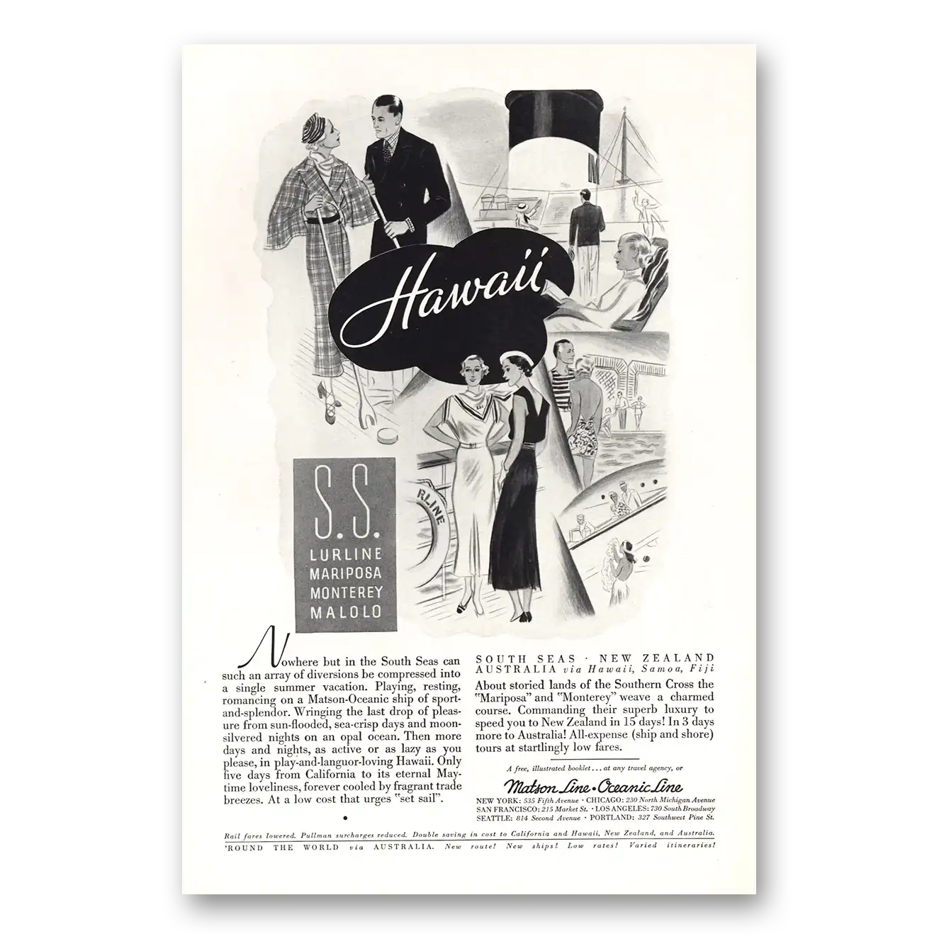This is an original 1934 Matson Line print ad published by Matson Line.
