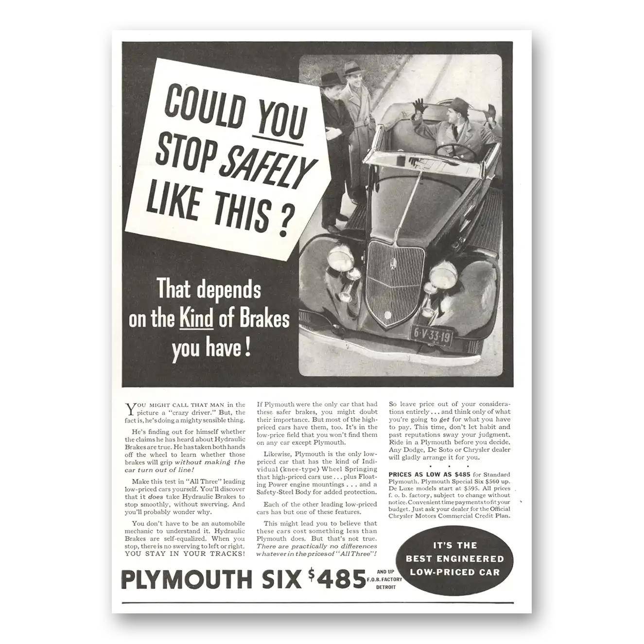 1934 Plymouth Six Print Ad | Stop Safely1934 Plymouth Six Print Ad | Stop Safely