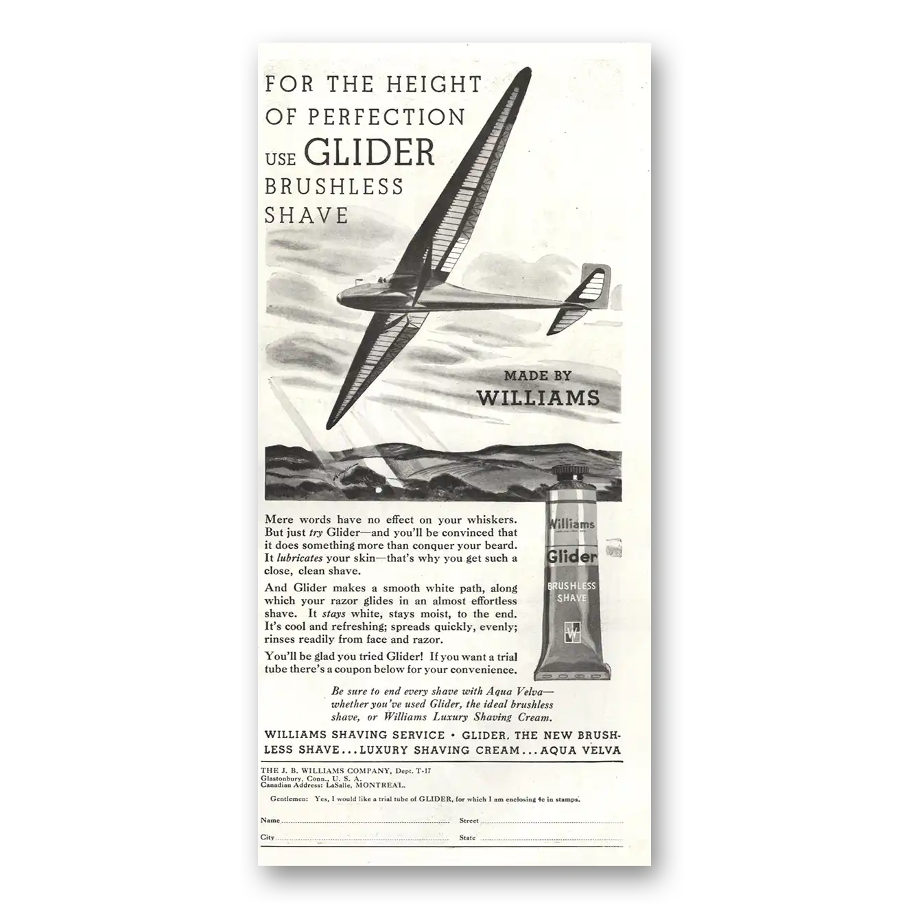 1934 Williams Shaving Cream Print Ad | Height Perfection
