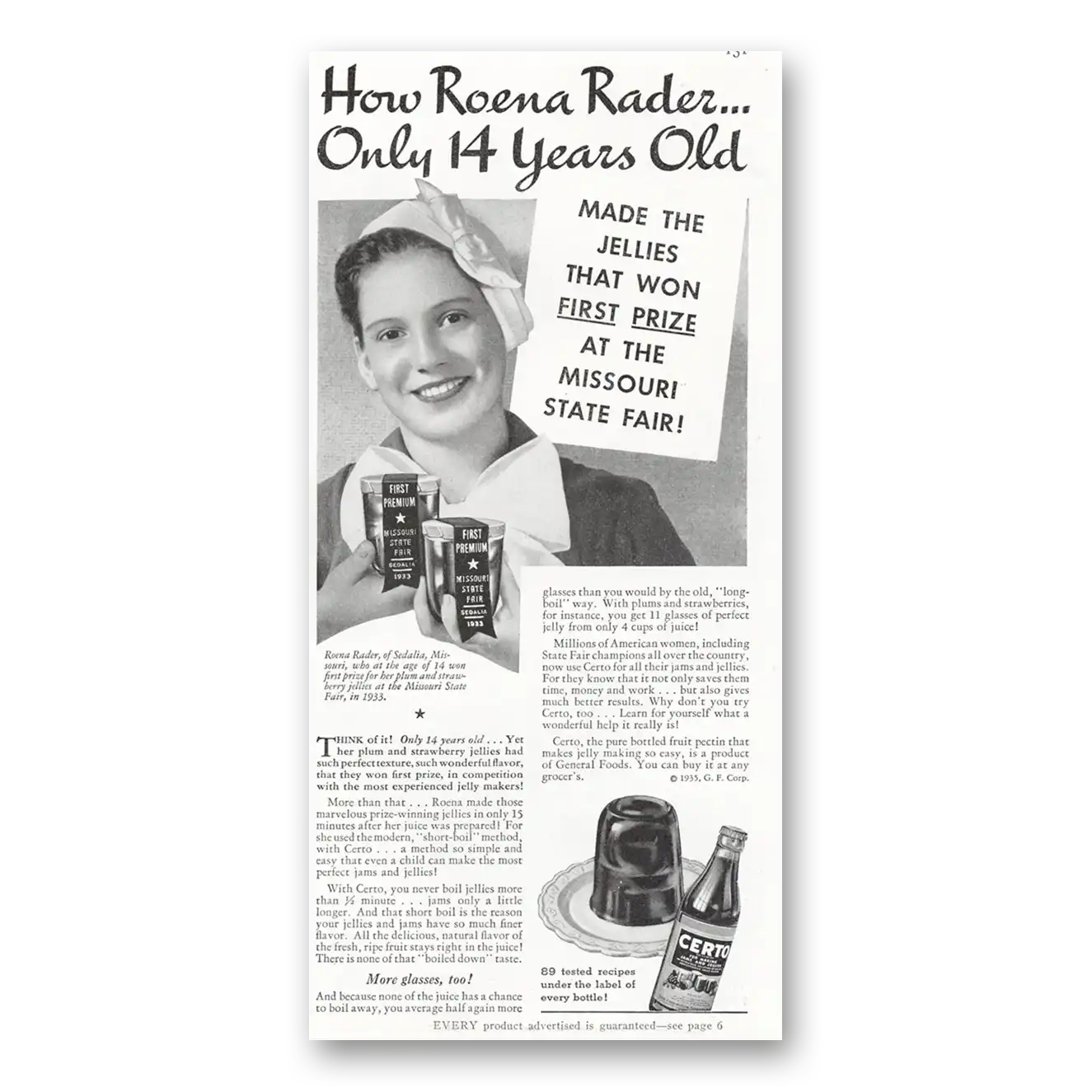 1935 Certo Print Ad | Roena Rader