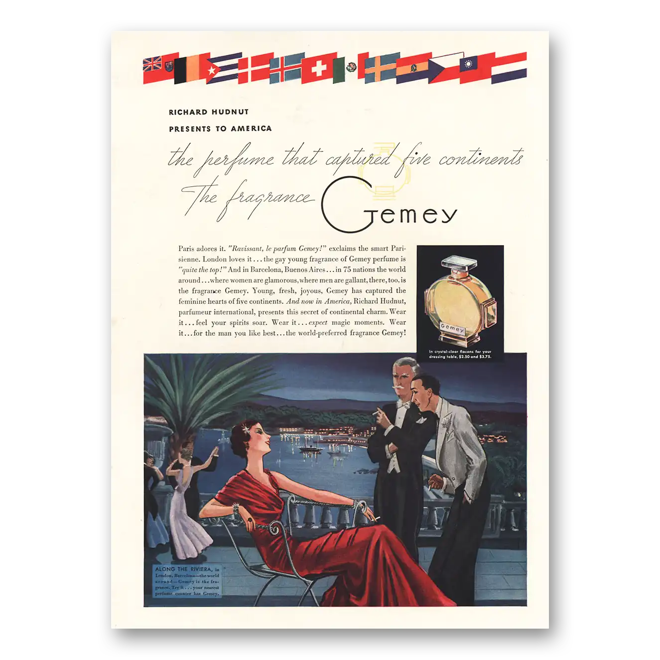 This is an original 1935 Gemey Perfume print ad published by Richard Hudnut.