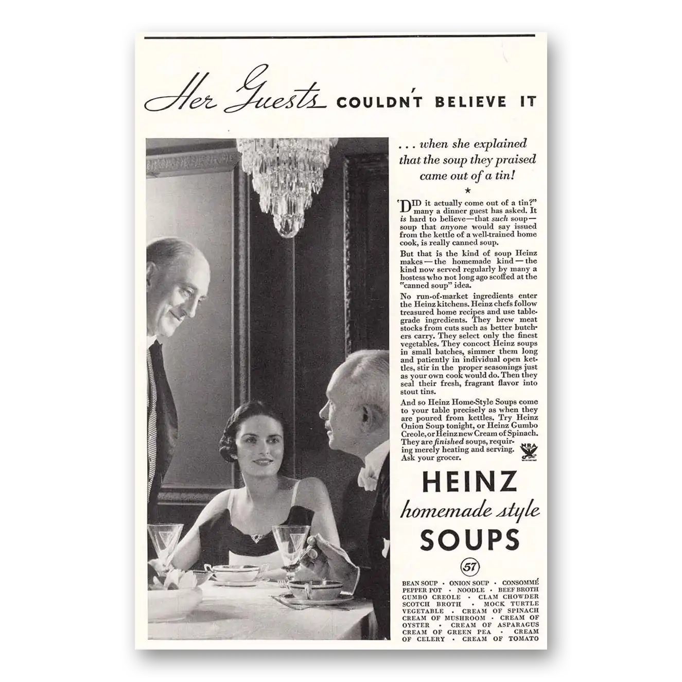 1935 Heinz Print Ad | Soups Her Guests