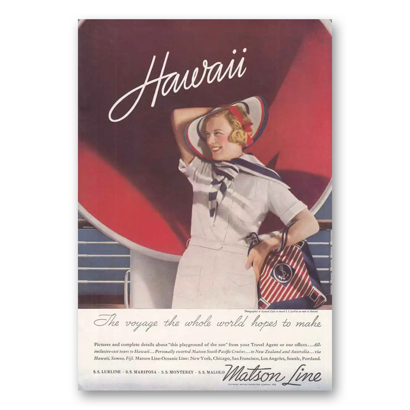 This is an original 1935 Matson Line print ad published by Matson Line.