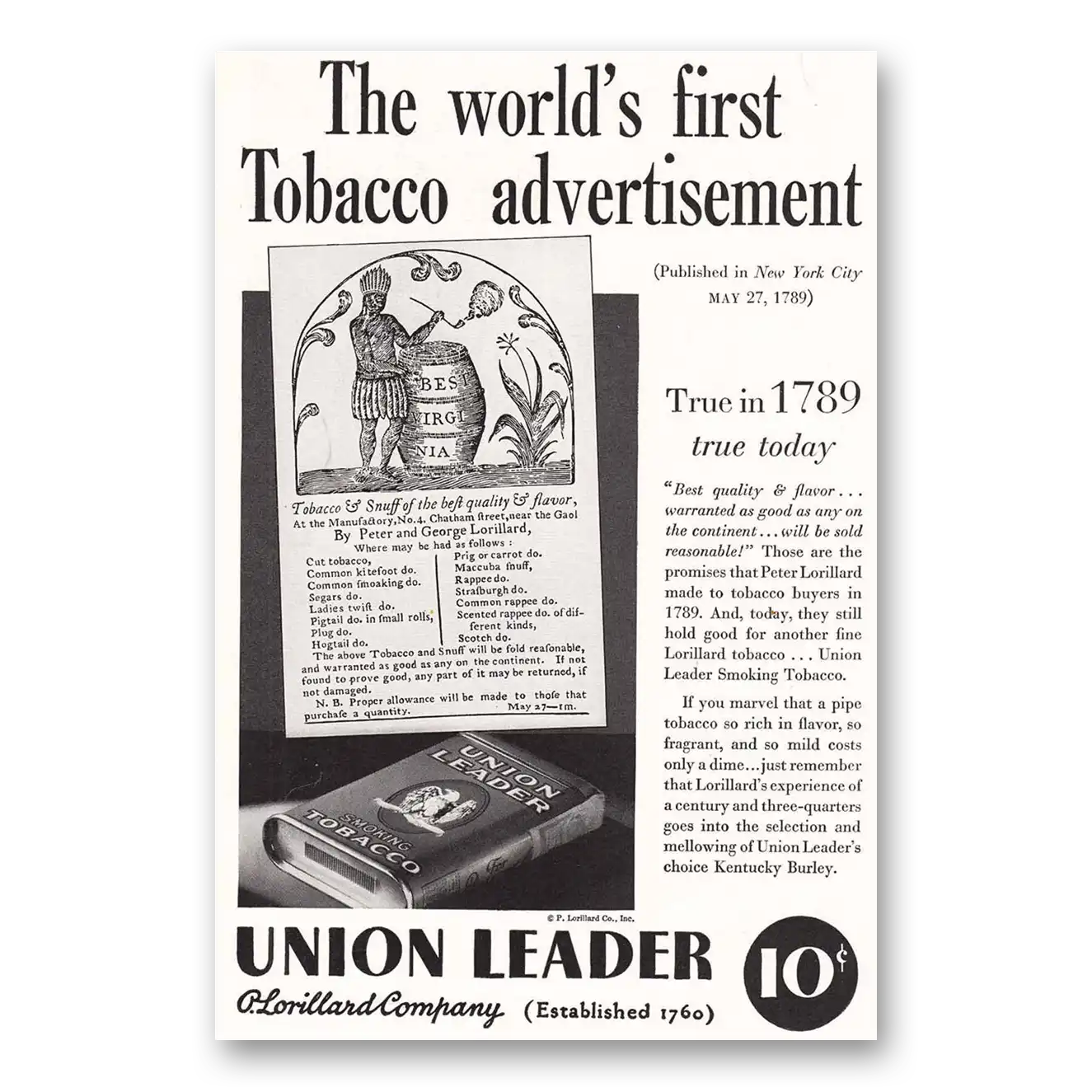 1935 Union Leader Tobacco Print Ad | Tobacco Advertisement