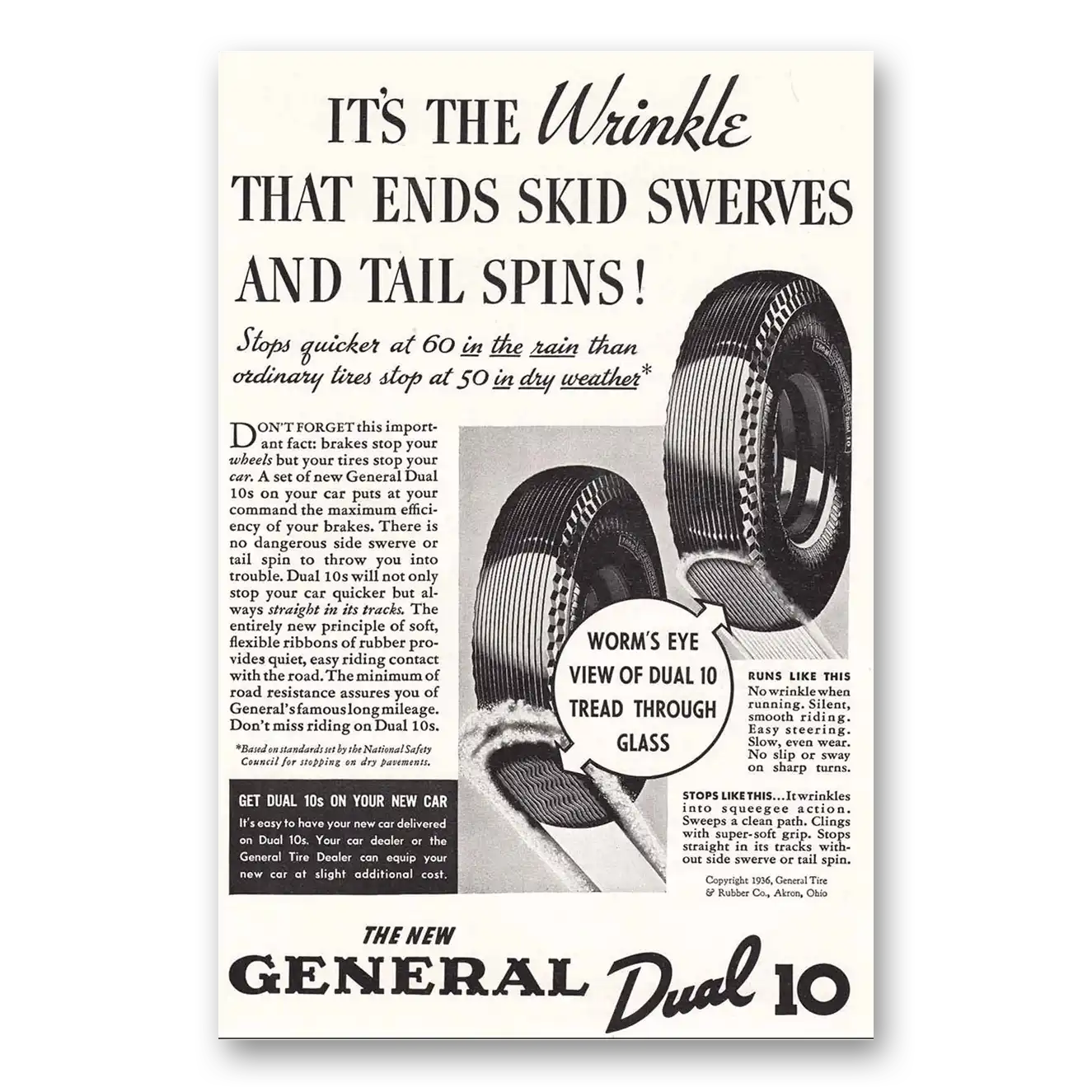 1936 General Tire Print Ad | Skid Swerves