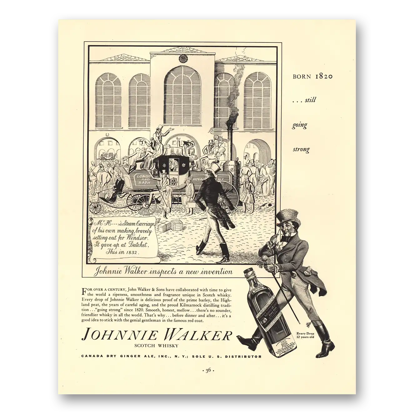 This is an original 1936 Johnnie Walker Black Label print ad published by Johnnie Walker.