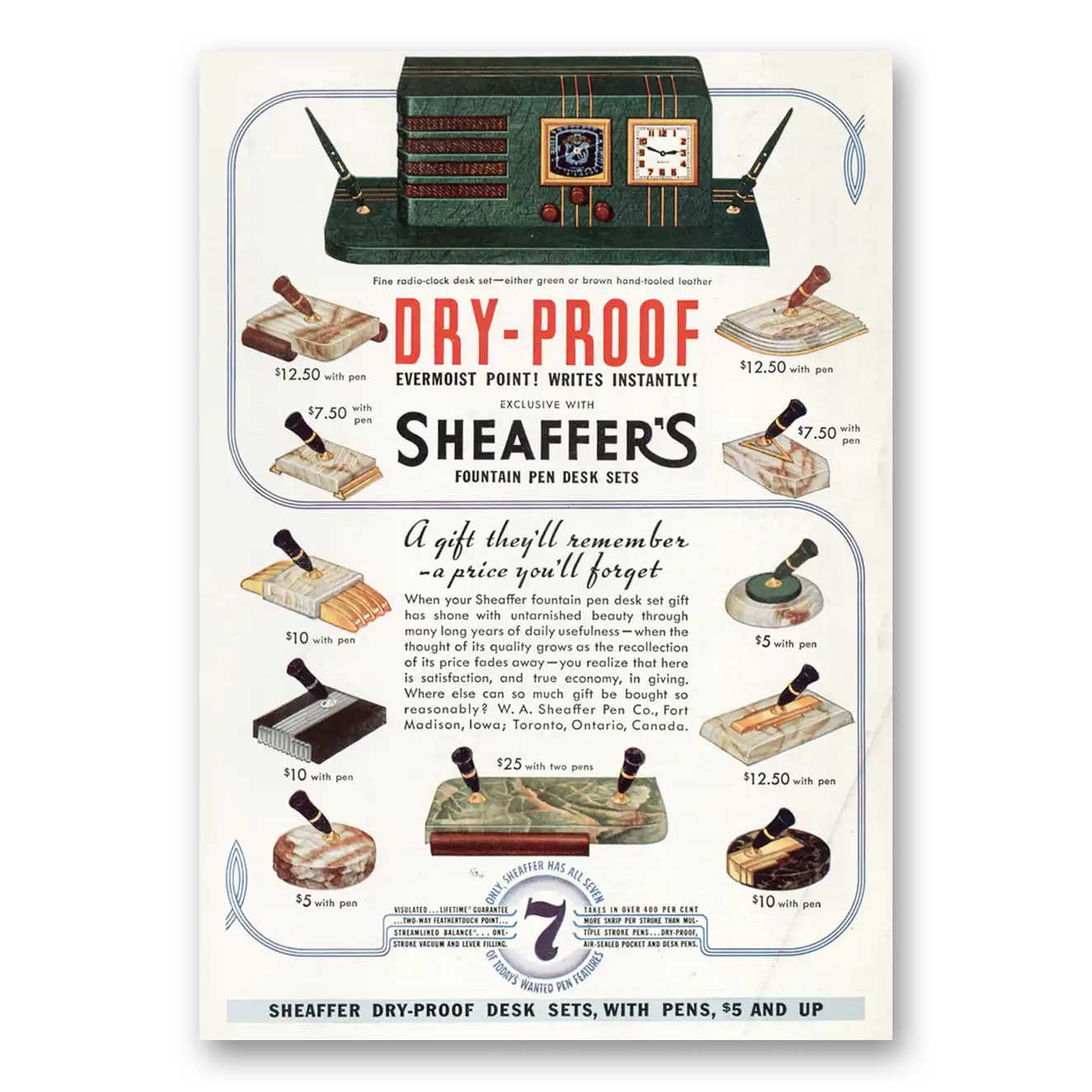 1936 Sheaffers Fountain Pen Desk Sets Print Ad | Dry Proof