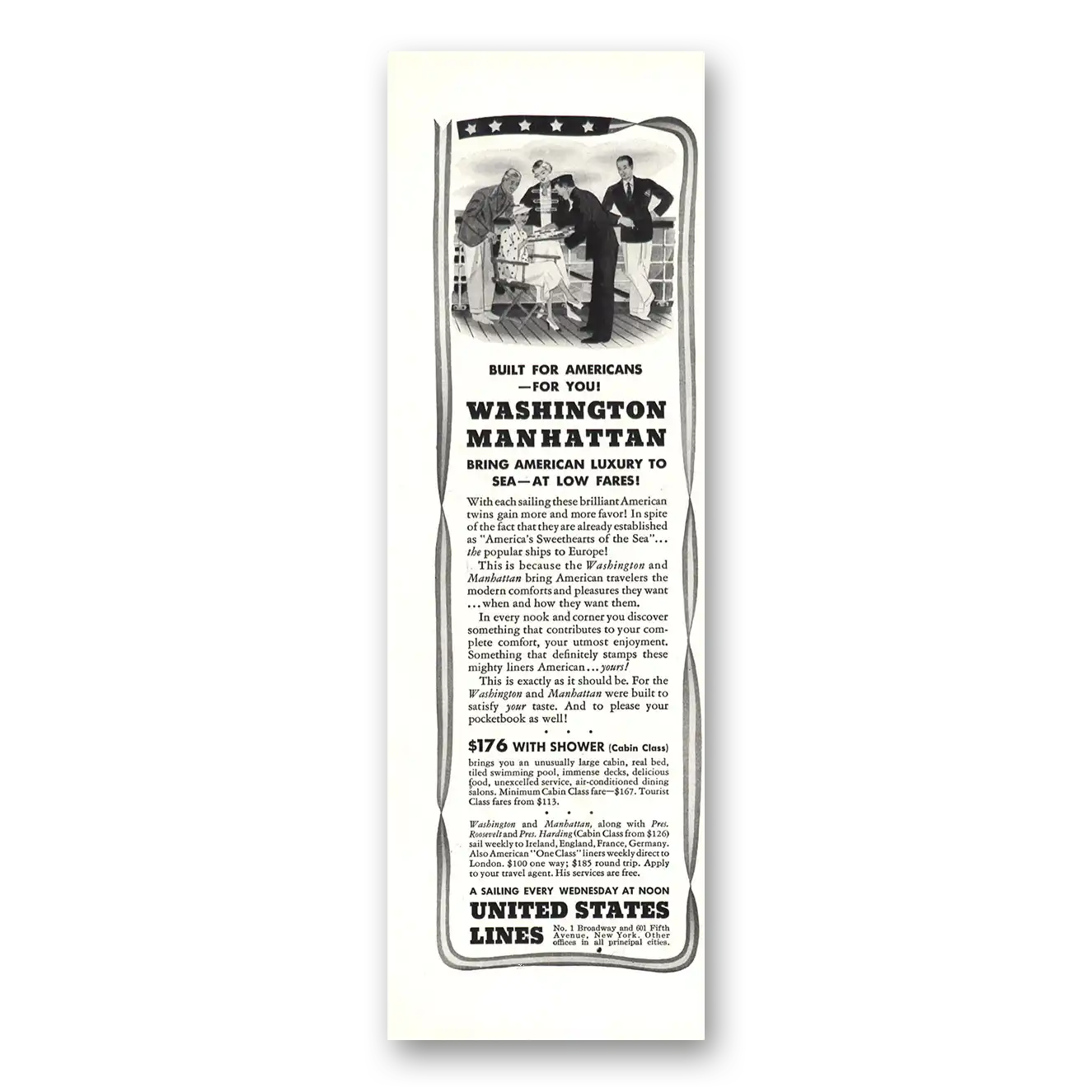 1936 United States Lines Print Ad | Manhattan1936 United States Lines Print Ad | Manhattan