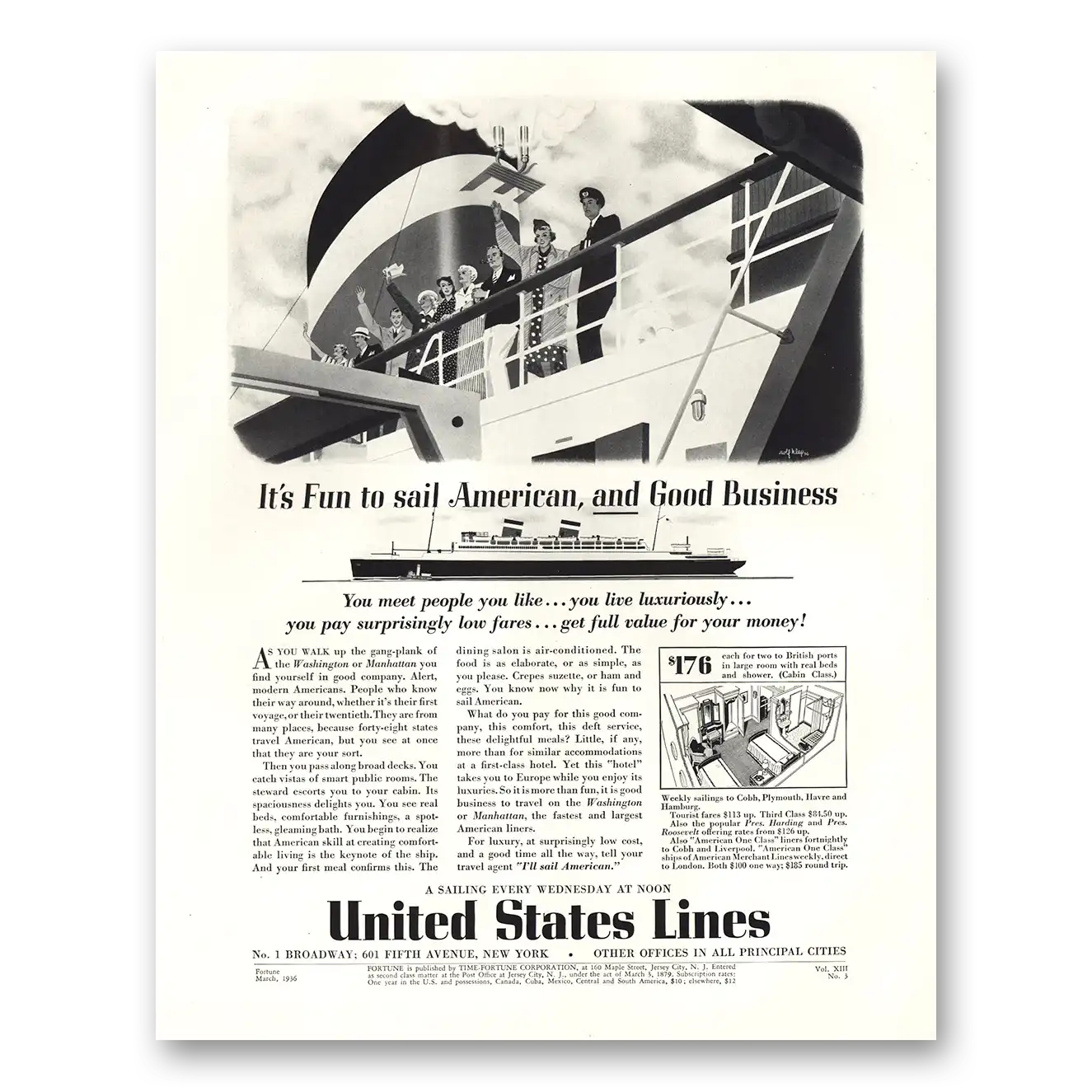 1936 United States Lines Print Ad | Sail American