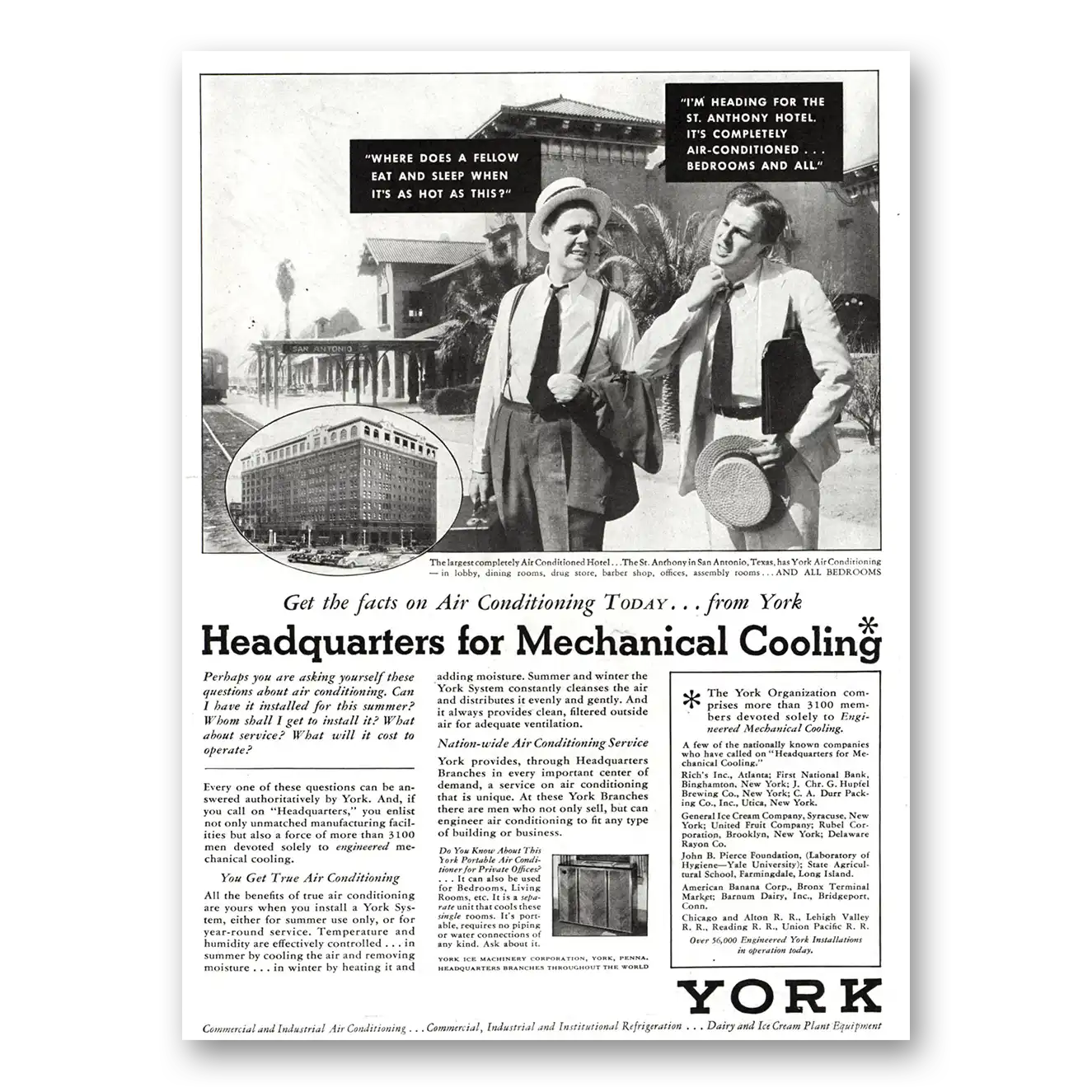 1936 York Air Conditioning Print Ad | Mechanical Cooling