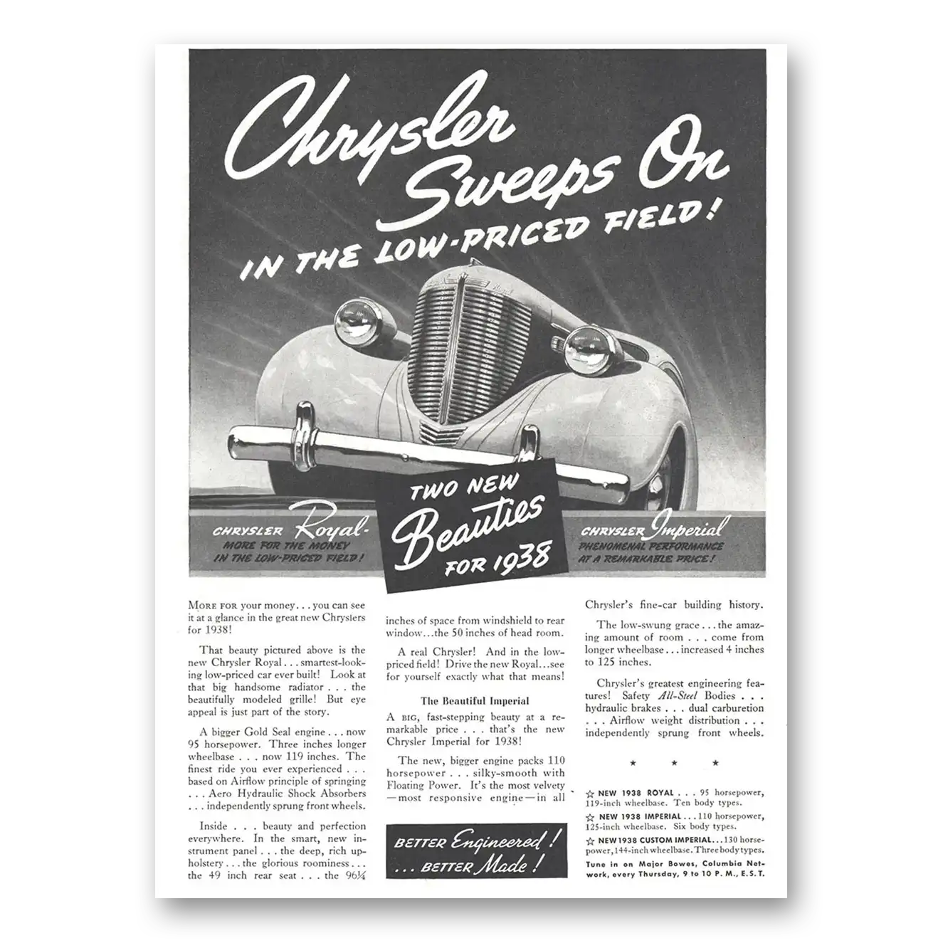 1937 Chrysler Royal Print Ad | Sweeps On