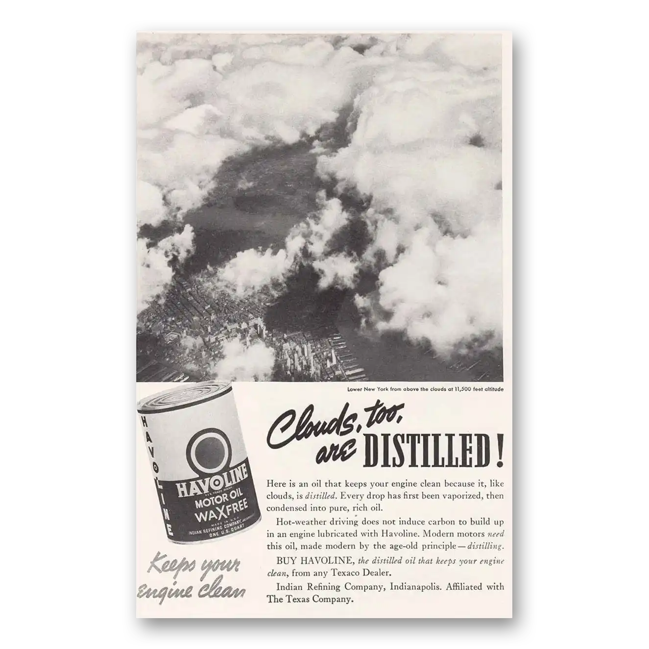 1937 Havoline Motor Oil Print Ad | Clouds Distilled