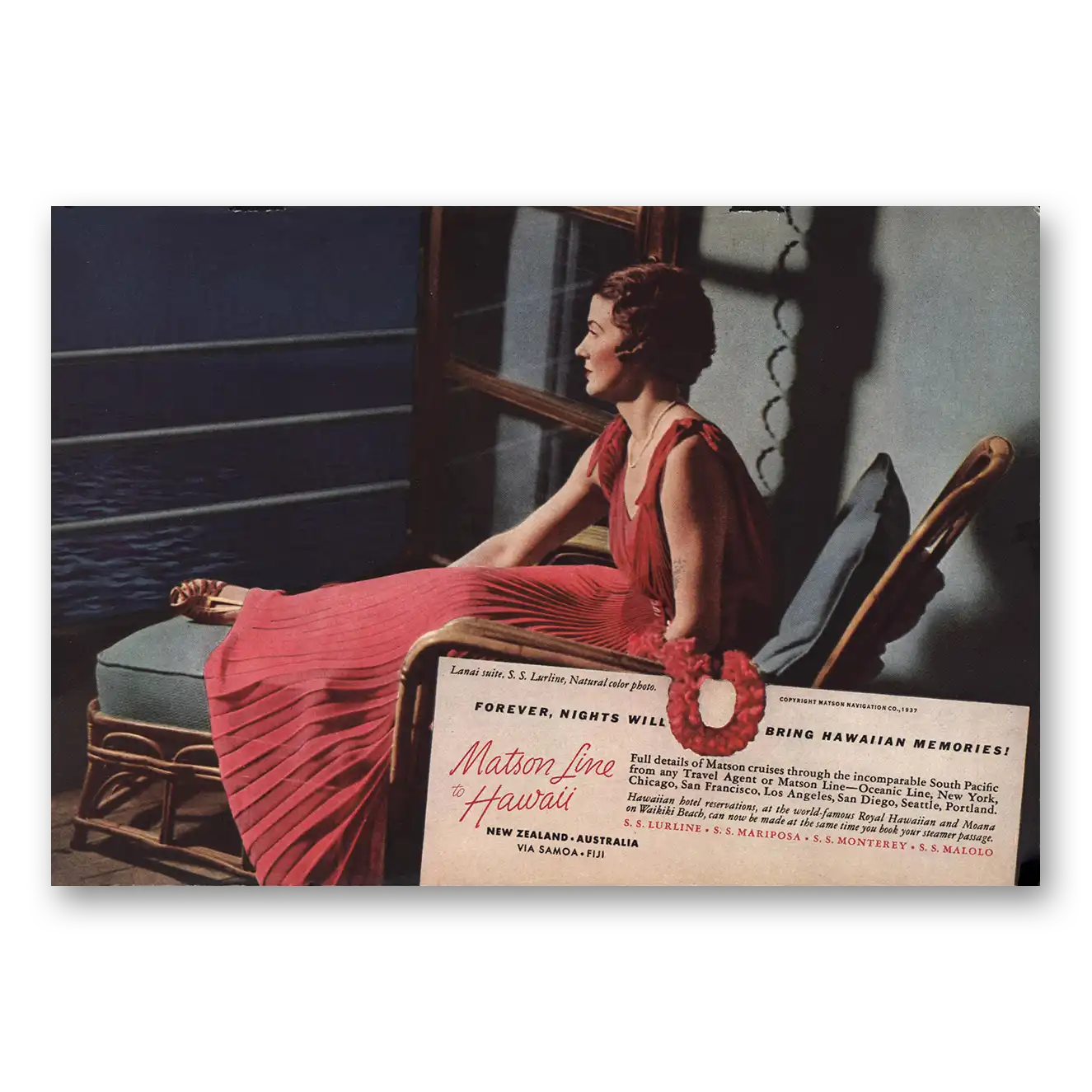 This is an original 1937 Matson Line print ad published by Matson Line.