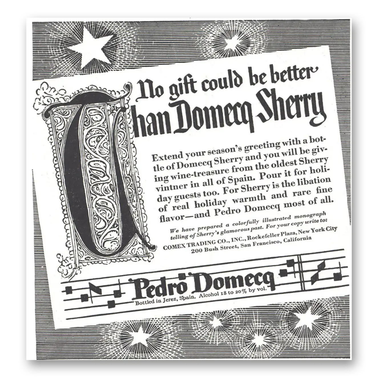 1937 Pedro Domecq Sherry Print Ad | No Gift