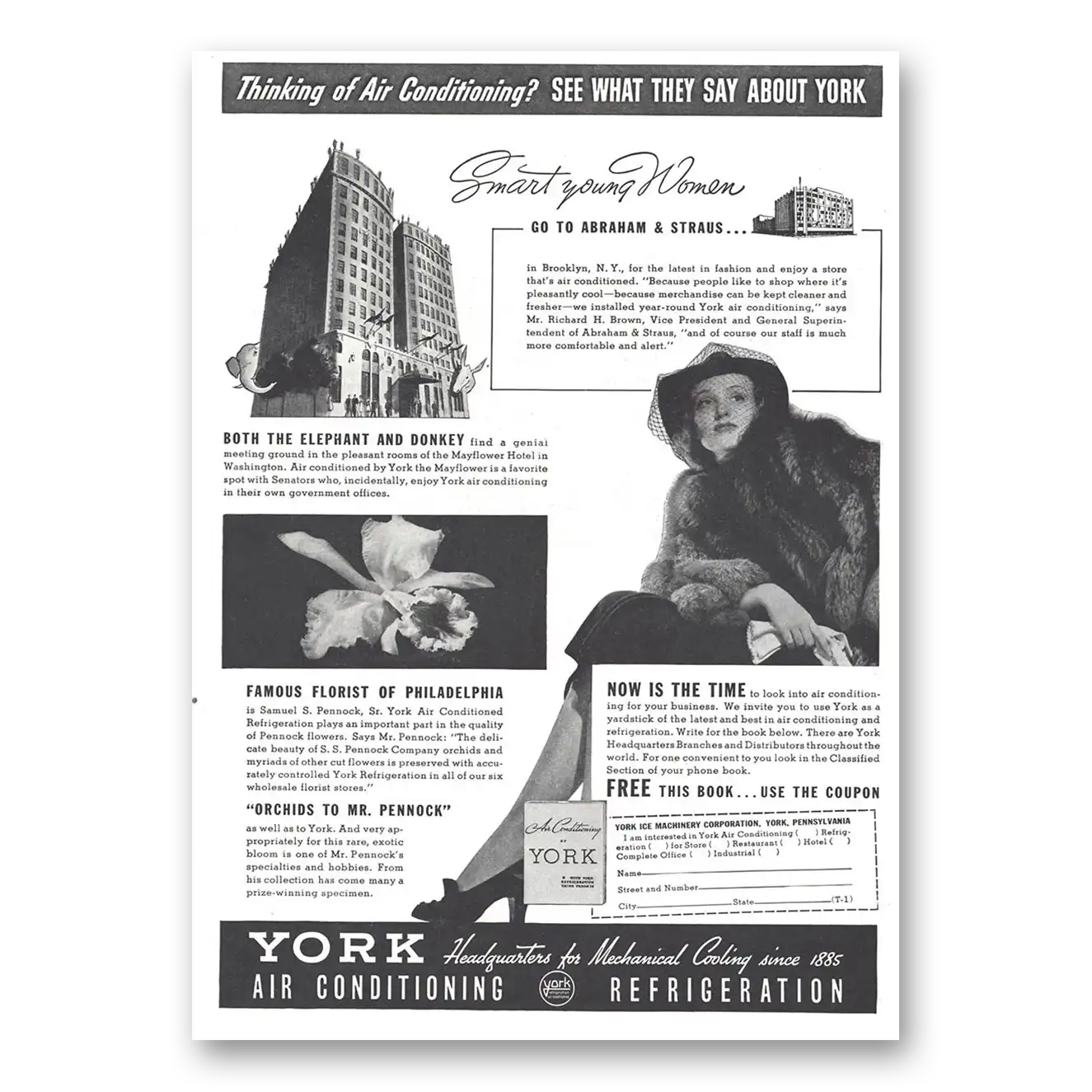 This is an original 1937 York Air Conditioning print ad published by York Ice Machinery.