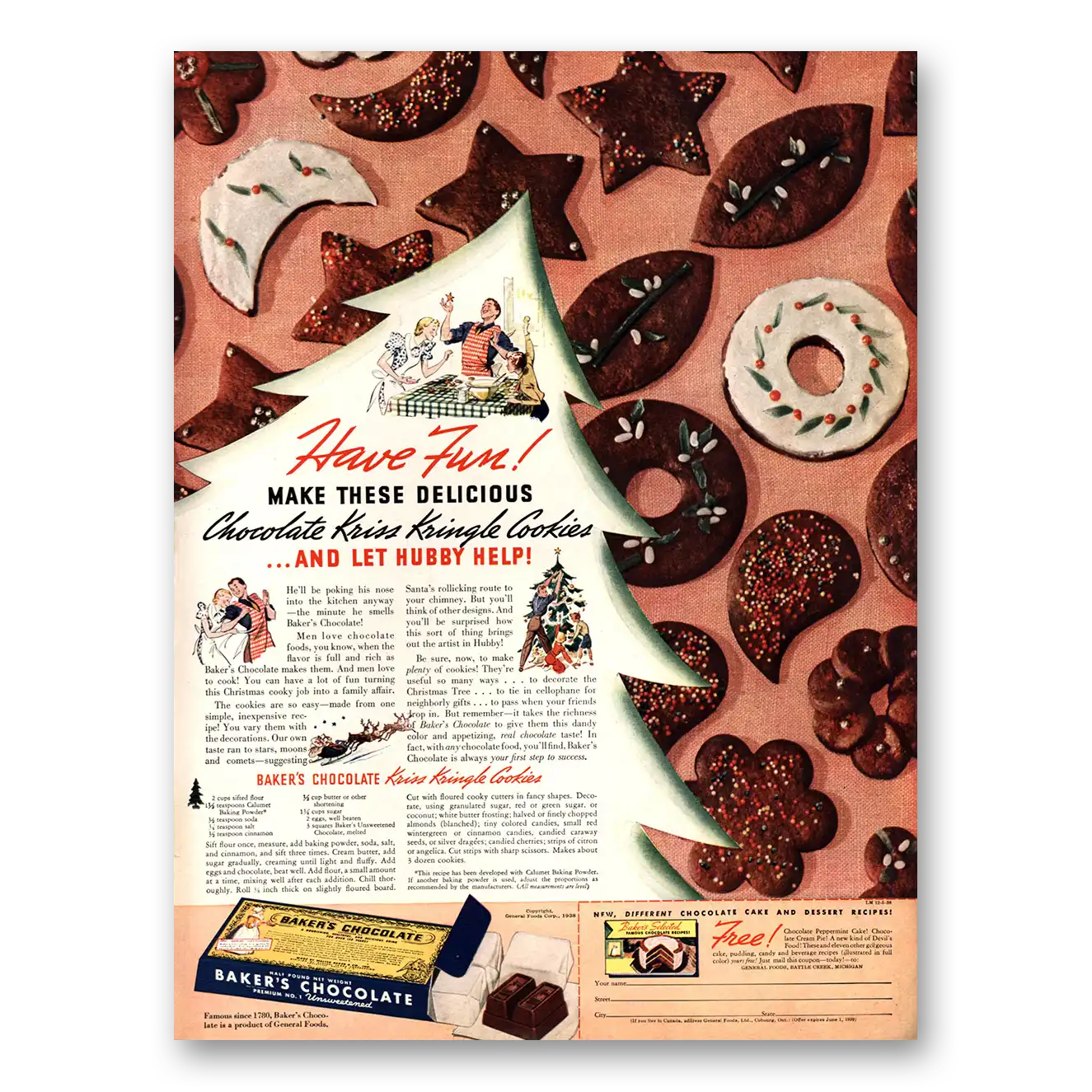 1938 Bakers Chocolate Print Ad | Kriss Kringle