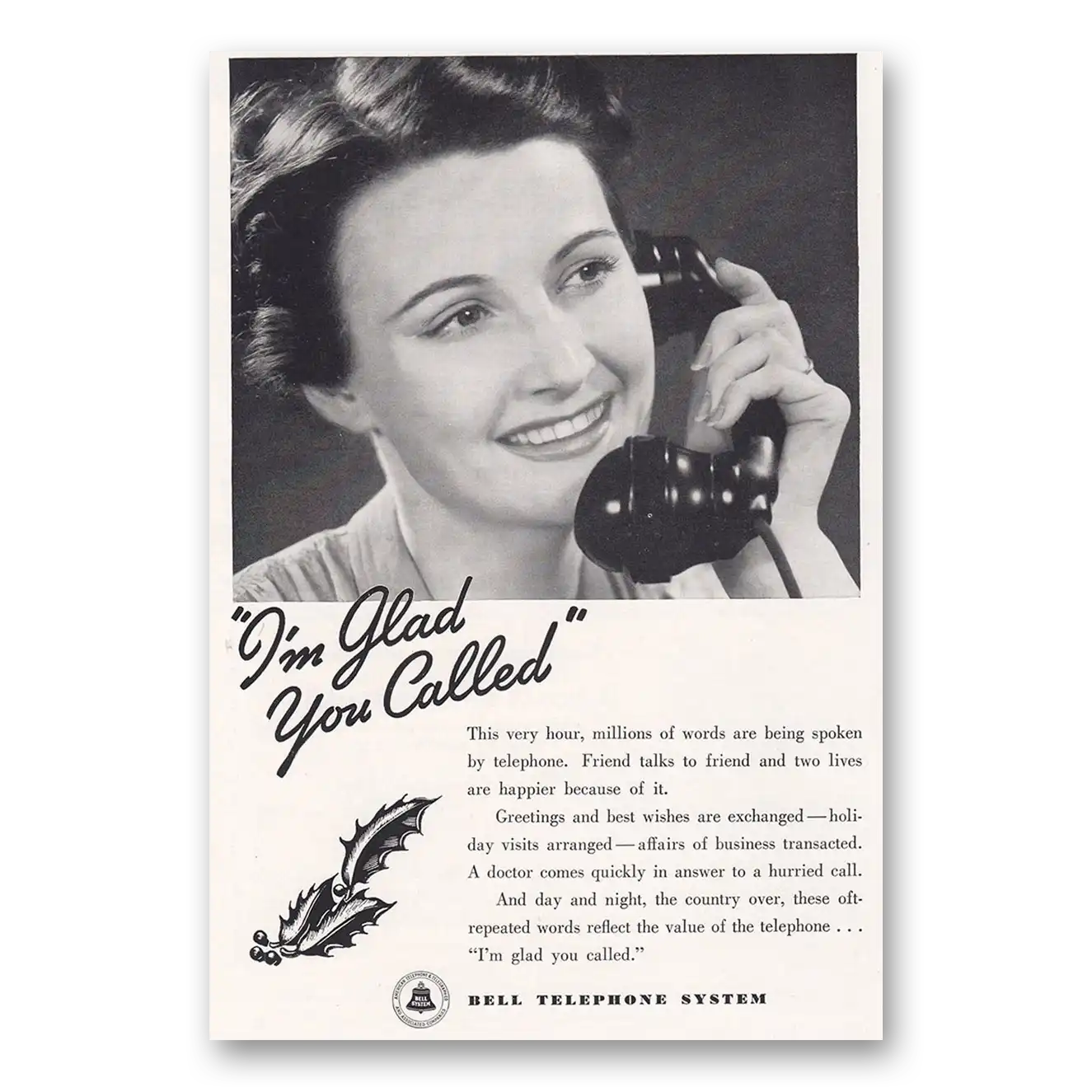 1938 Bell Telephone Print Ad | Glad You Called