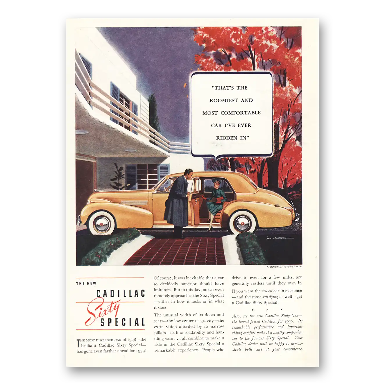 1938 Cadillac Sixty Special Brougham Print Ad | Roomiest And Most Comfortable