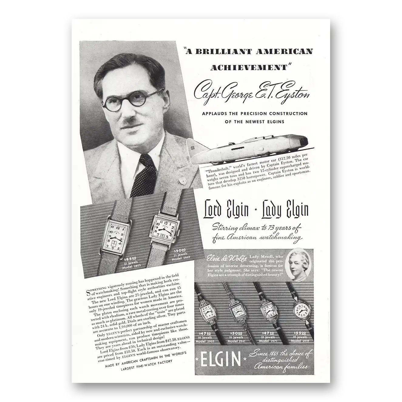 1938 Elgin Watch Print Ad | Capt George E T Eyston