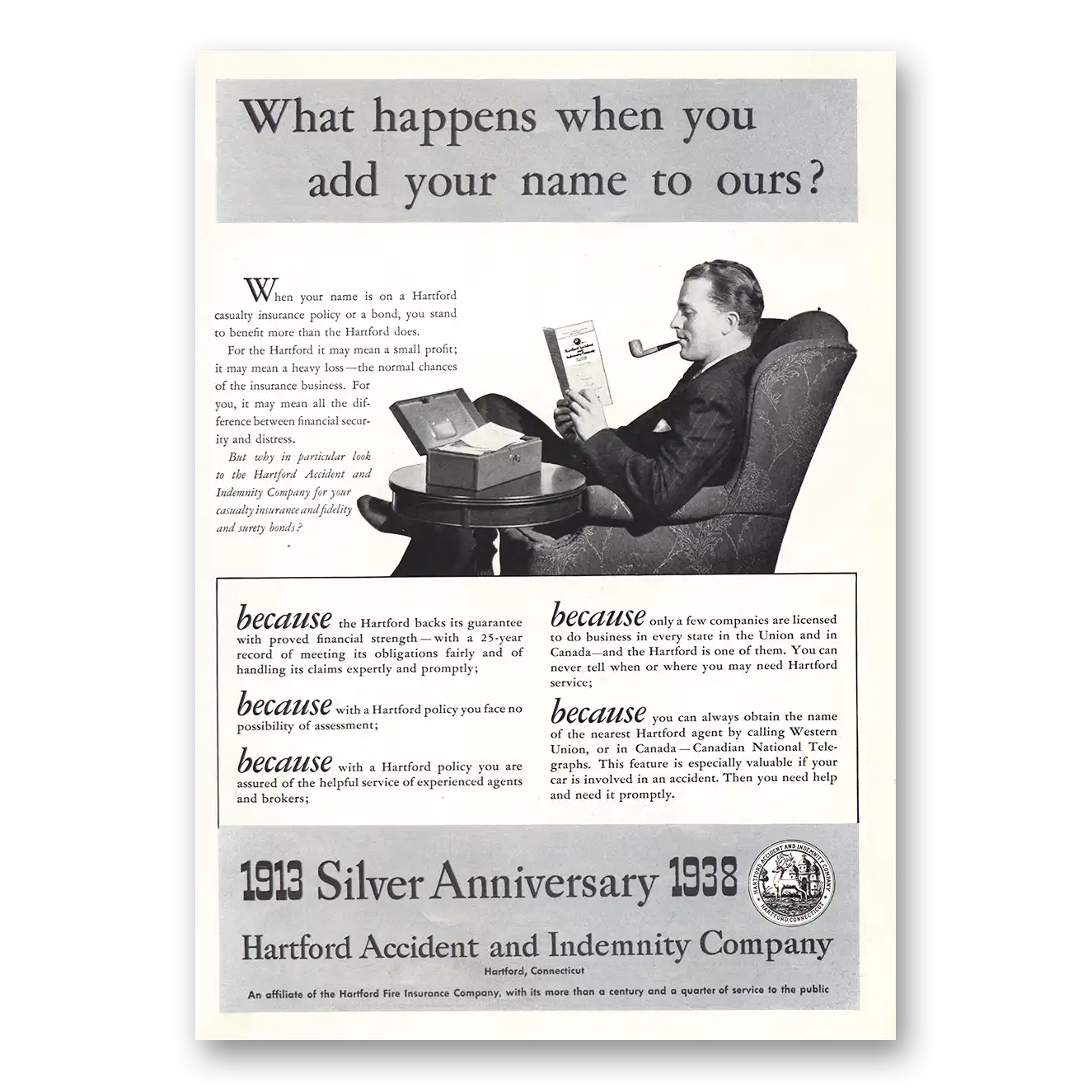 1938 Hartford Insurance Print Ad | Silver Anniversary