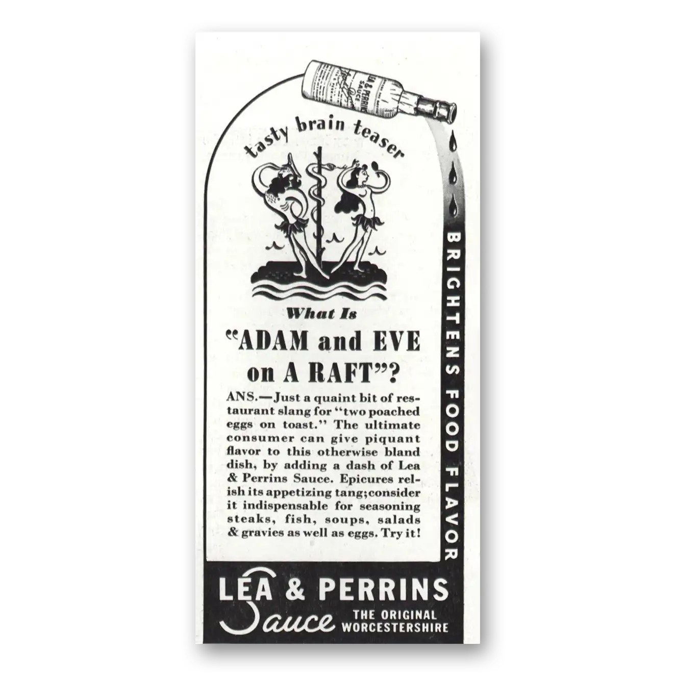 1938 Lea & Perrins Print Ad | Adam Eve1938 Lea & Perrins Print Ad | Adam Eve