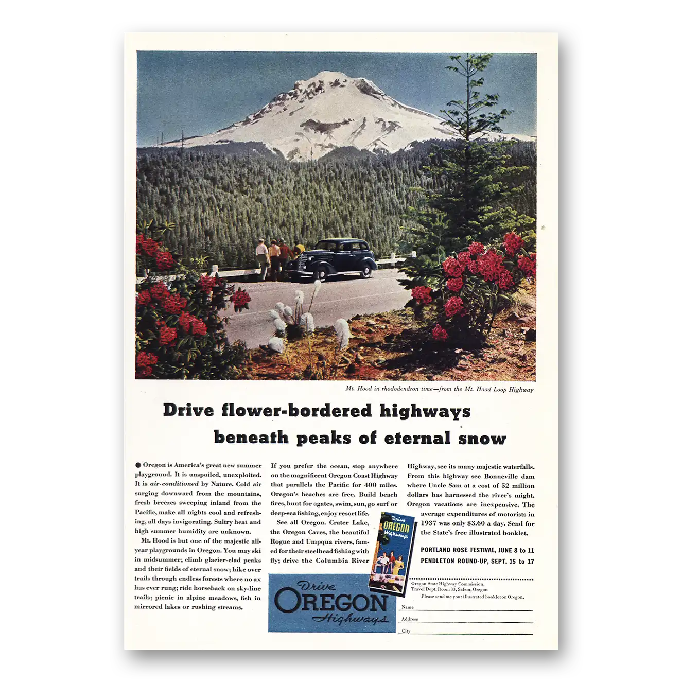 1938 Oregon Print Ad | Drive Flower Bordered Highways