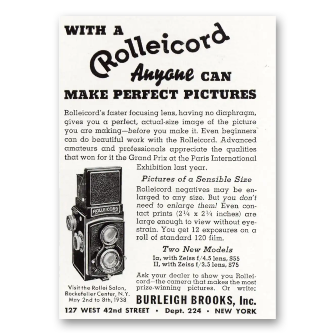 1938 Rolleicord Camera Print Ad | Perfect Pictures