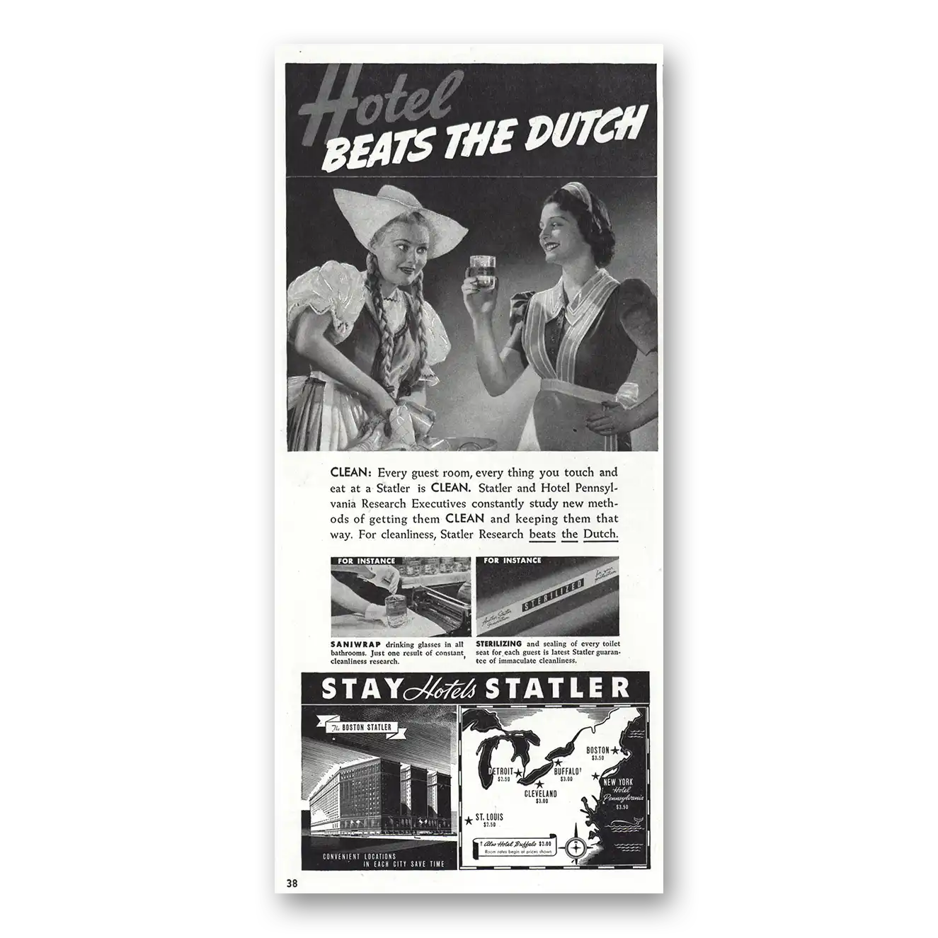 1938 Statler Hotels Print Ad | Beats The Dutch