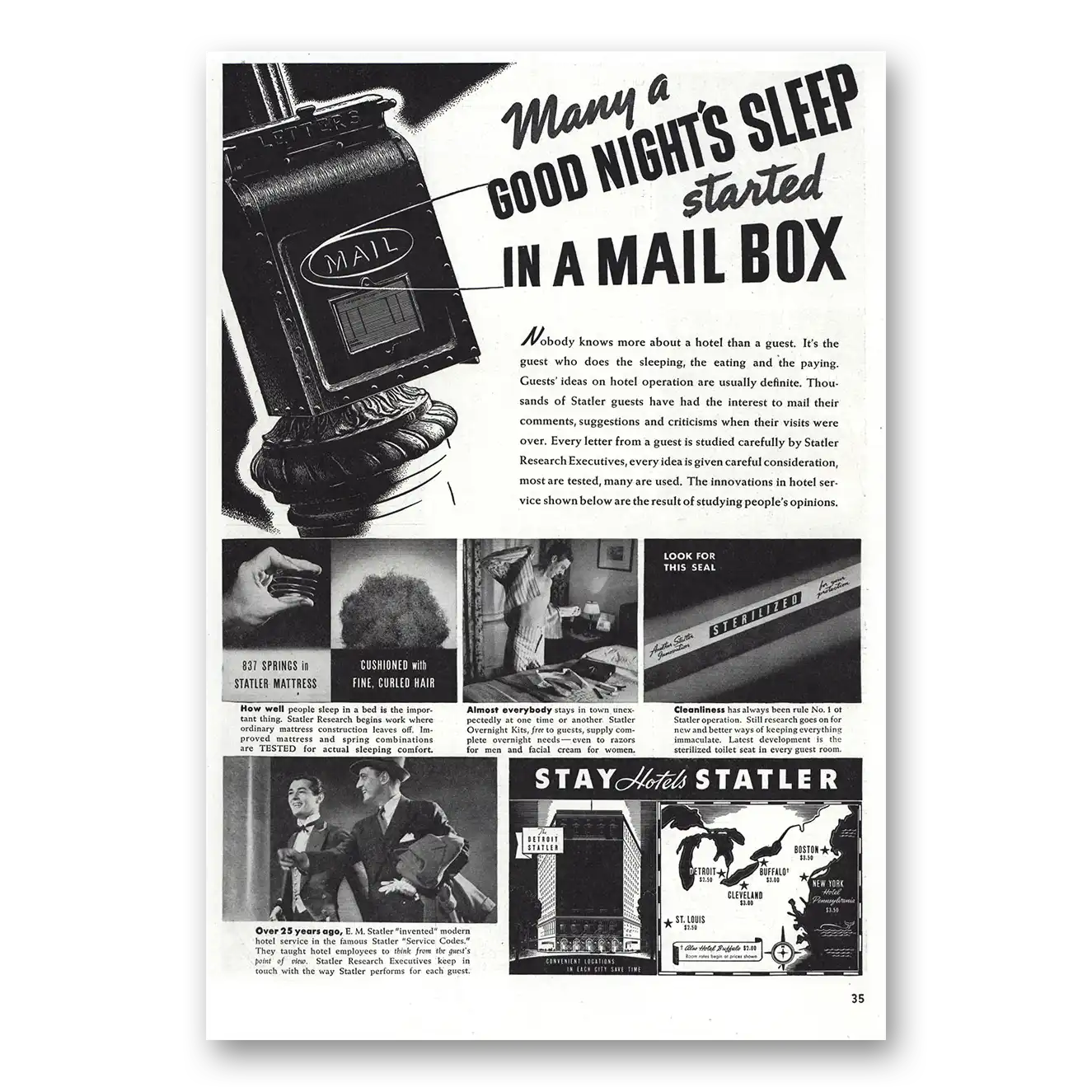 This is an original 1938 Statler Hotels print ad published by Statler Hotels.