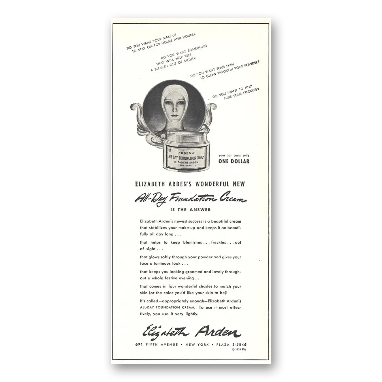 1939 Elizabeth Arden Print Ad | Foundation Cream1939 Elizabeth Arden Print Ad | Foundation Cream