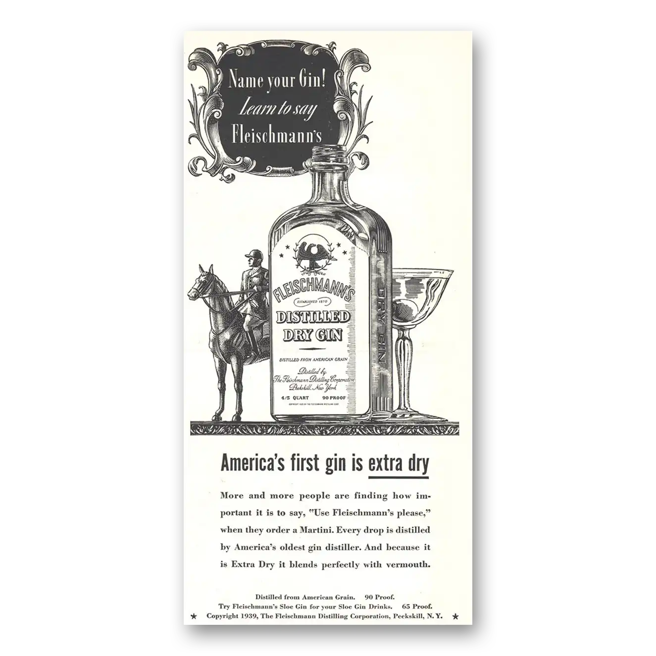 1939 Fleischmanns Gin Print Ad | Name Your Gin