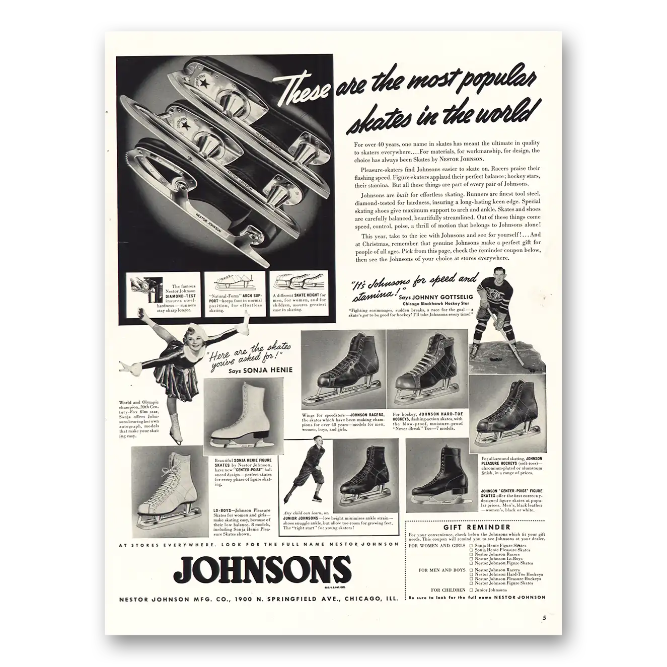 This is an original 1939 Johnsons Ice Skates print ad published by Nestor Johnson.