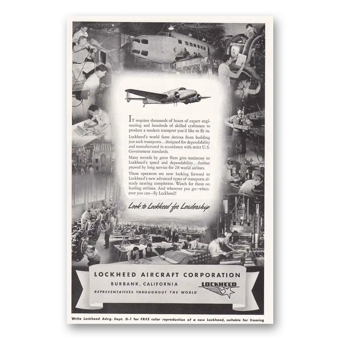 This is an original 1939 Lockheed print ad published by Lockheed.