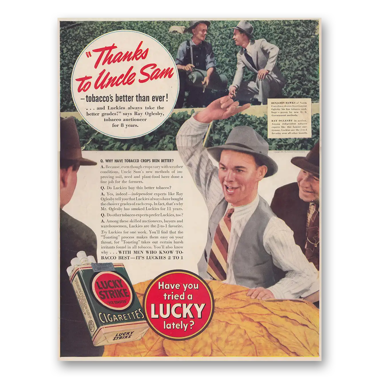 1939 Lucky Strike Cigarettes Print Ad | Uncle Sam